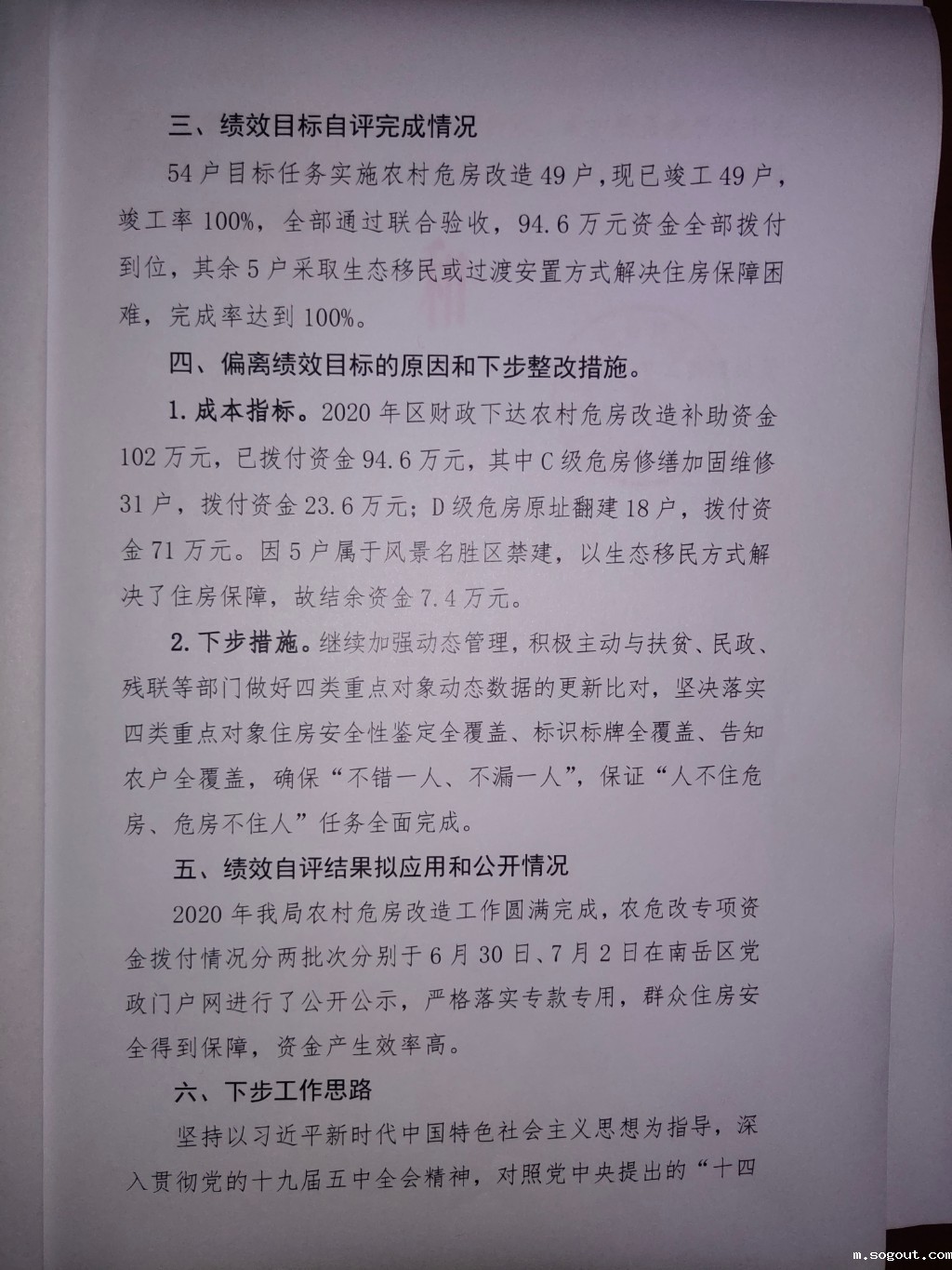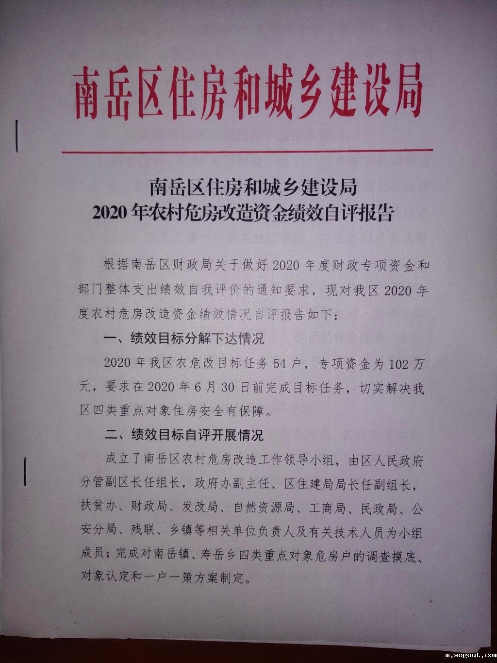 2020年雷竞技游戏平台特色住建局农危改专项绩效自评报告