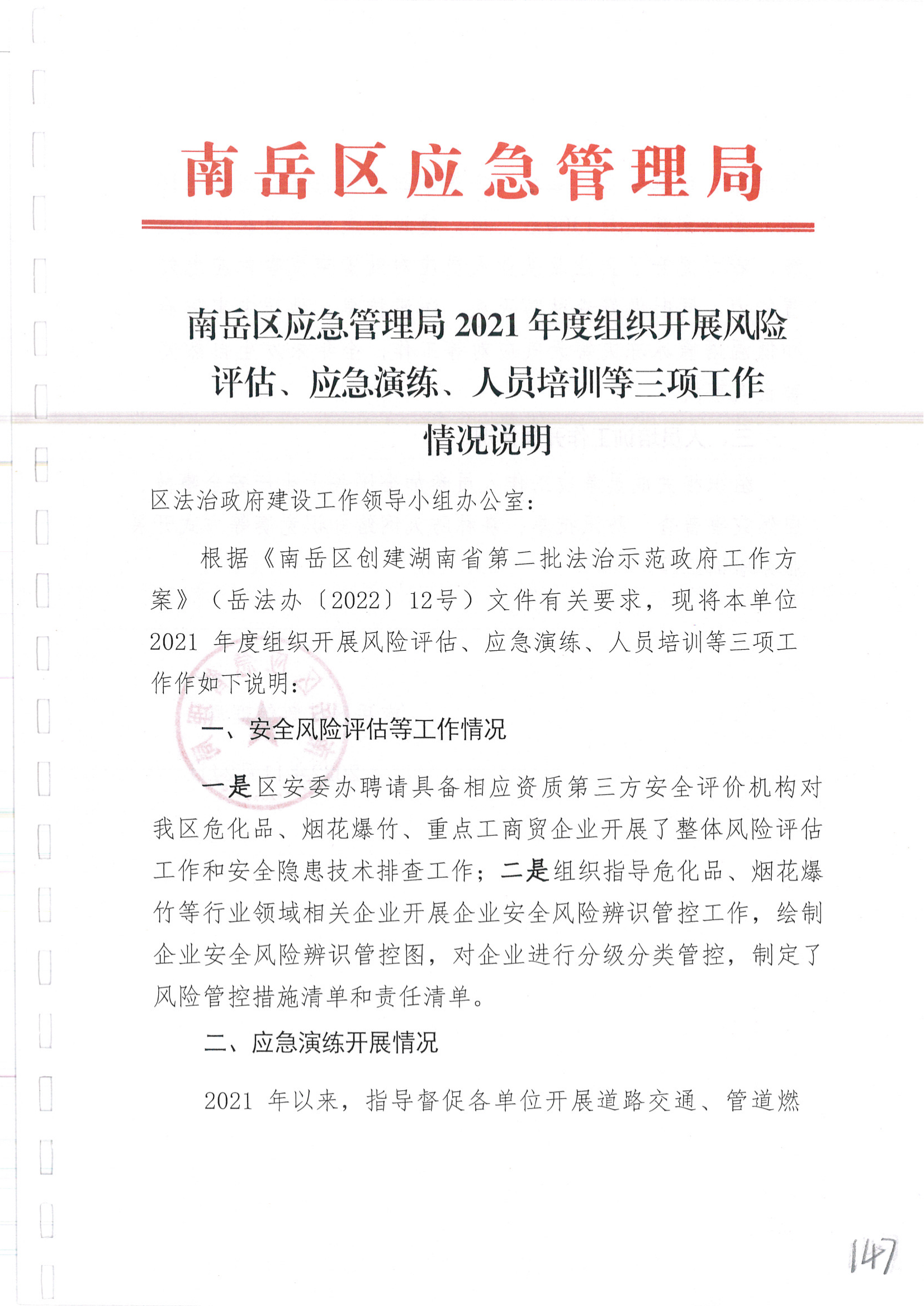 雷竞技游戏平台特色应急管理局2021年度组织开展风险评估、应急演练、人员培训等三项工作情况说明