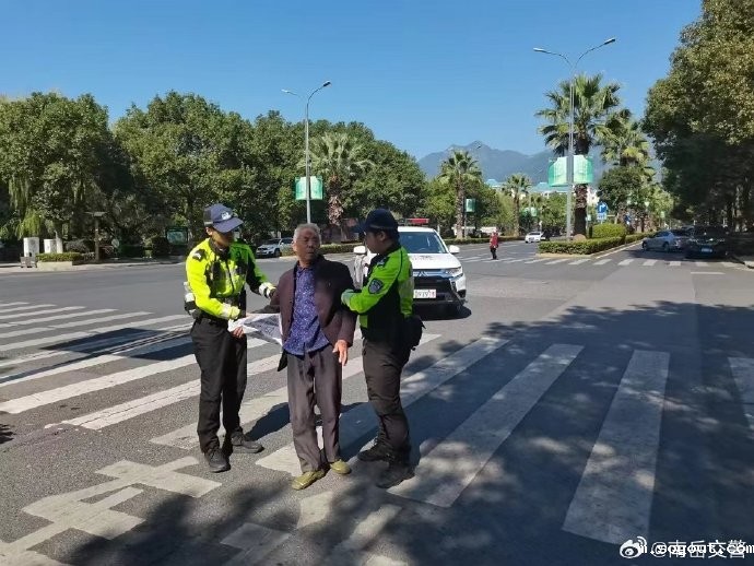 近日,衡阳南岳交警在路面巡逻时发现一位老人横躺在马路上。民警立即下车查看,原来是老人不慎摔倒,意识清醒,自己不能站立。