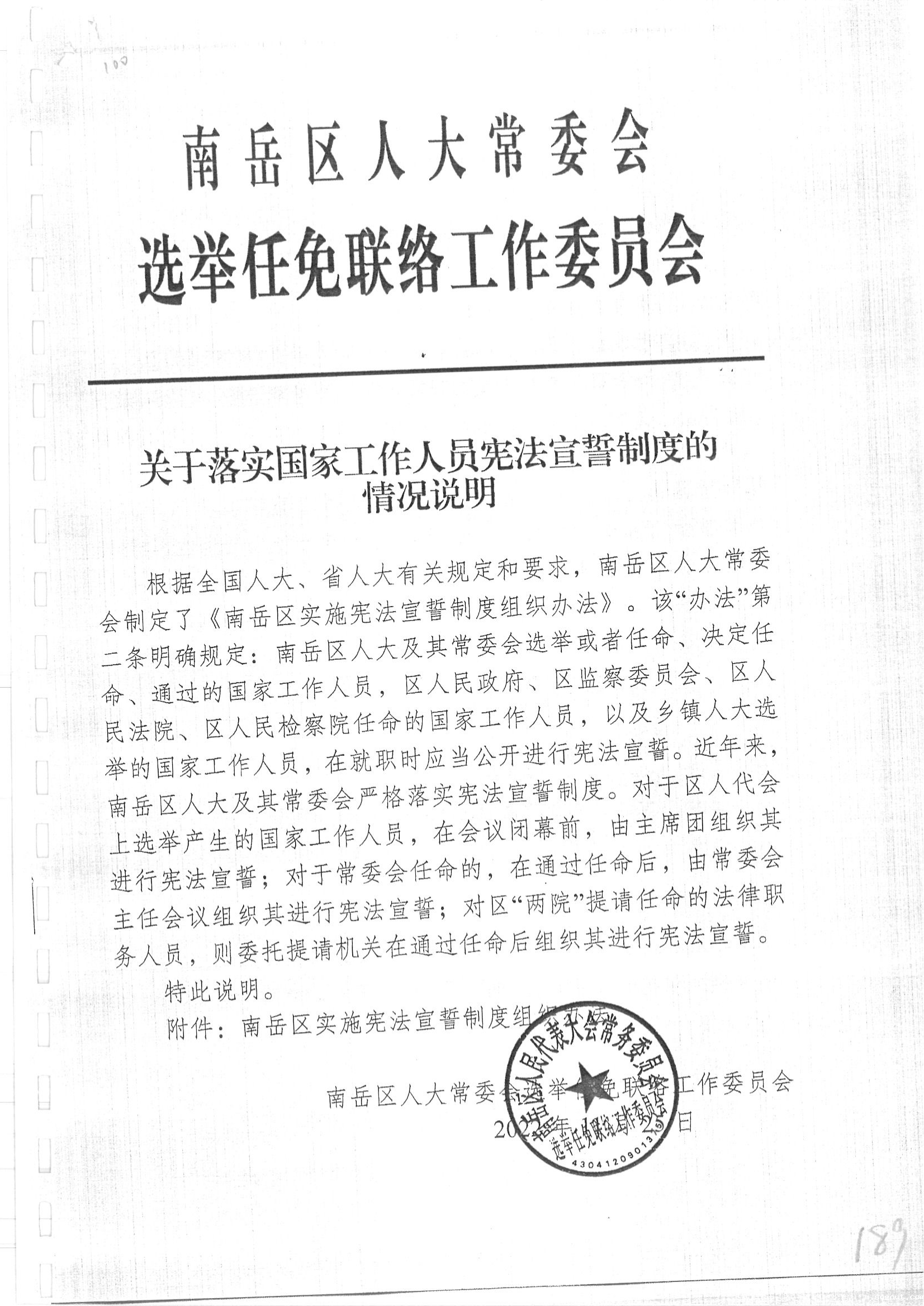 关于落实国家工作人员宪法宣誓制度的情况说明