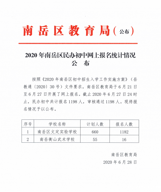 2020年雷竞技游戏平台特色民办初中网上报名统计情况公布
